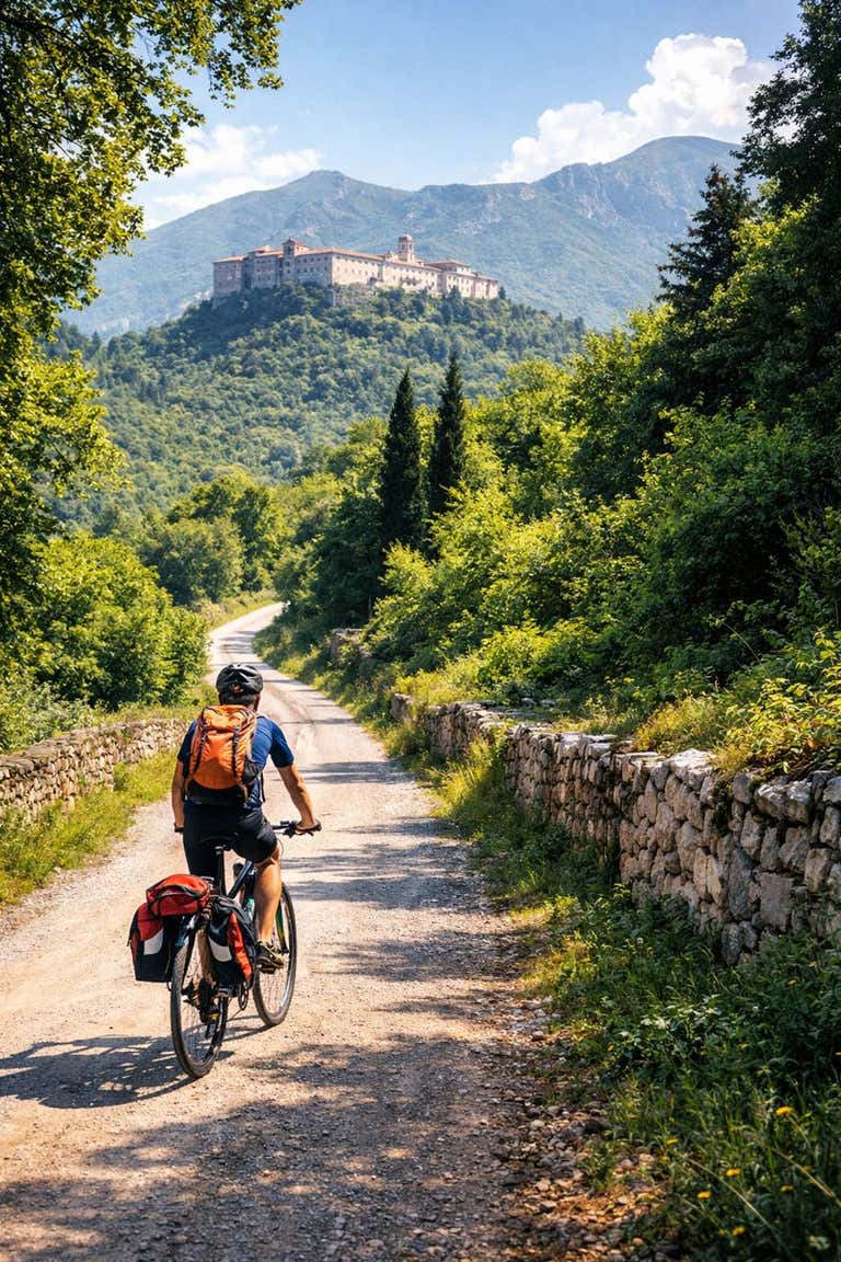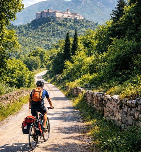 The appointment is at 9 a. m. in Cassino, in the province of Frosinone. After the welcome, the guide will offer us a welcome drink and carry out an initial briefing, explaining the itinerary, how the e-bikes work, and the historical context that will be the leitmotif of the experience. Then it's off!