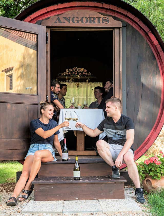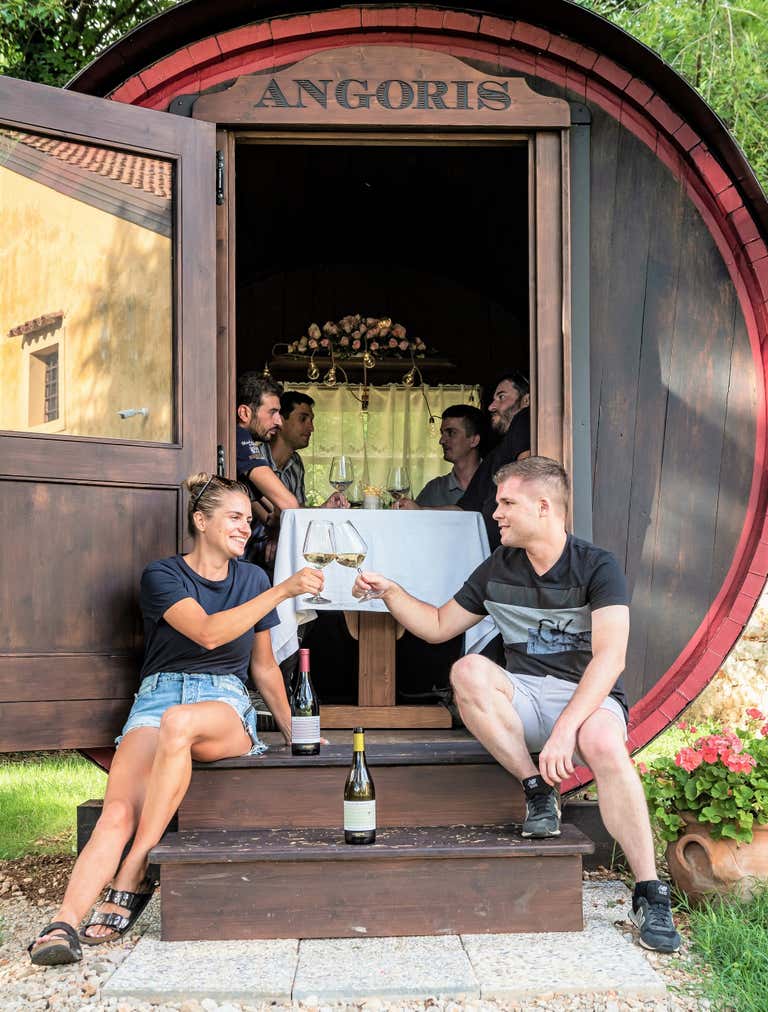 The highlight of the experience will be a romantic tasting inside an atmospheric renovated 150 hl barrel , overlooking the villa. You will be able to sit in the small tasting room set up inside the barrel and taste 3 of the most representative wines of the winery