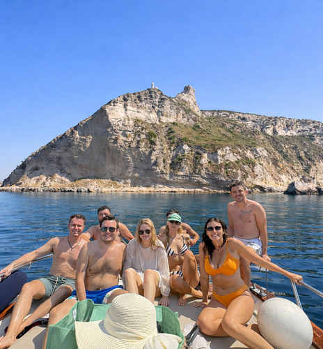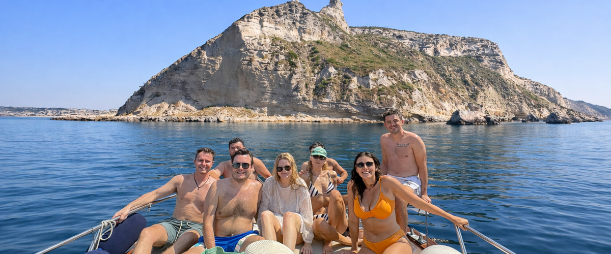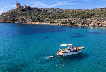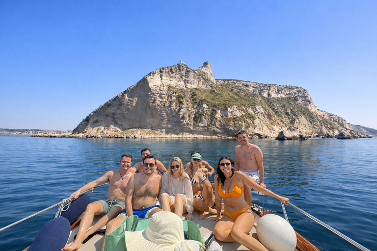The boat used is a 9. 5-metre Libeccio gozzo equipped with an awning, toilet, shower, table and large sundeck. On board you stay without shoes or in flip-flops.