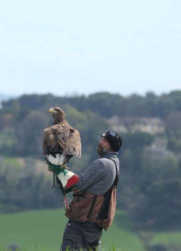 The appointment is at the selected time at the indicated meeting point, where we will be welcomed by the falconer and his birds of prey. The falconer will release three eagles and a vulture, while we will watch them soar free in the sky, between the hills of Civitanova Marche and the sea not far away.