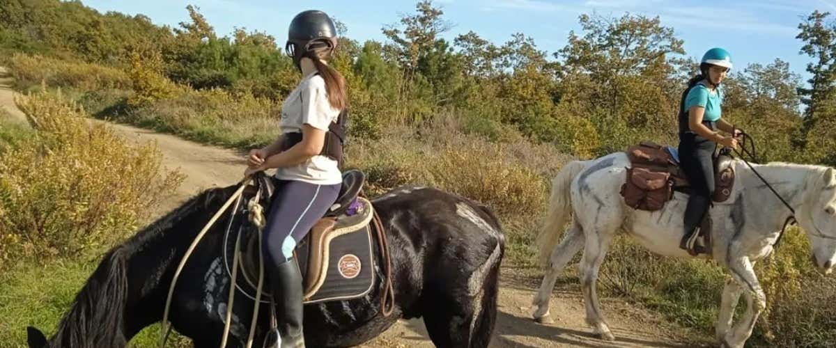 The activity is aimed at experienced riders able to ride at a walk, trot and gallop, from the age of 14. The course includes descents, climbs and branches to be dodged.