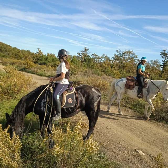 We will then climb back into the saddle to conclude our two-hour circular route to the initial gravel road. The most exciting challenge of the route will be at the end, when we will face a steep descent. Depending on our level of safety, we can decide to continue on horseback or descend on foot alongside him.