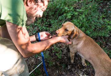 Once we have got to know them, we will follow them to the truffle ground, a nearby wooded area. Here we will leave them free to sniff out the truffles and guide us during the search for about 45 minutes. After collecting our booty, we will return to our starting point, where we can relax for a while at the estate's garden or swimming pool.
