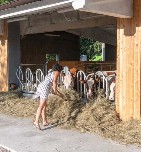 We will then visit the dairy, where we will learn how the milk produced on the farm is turned into delicious cheese. We will also hear some interesting facts about the farm, its history and the philosophy behind it.