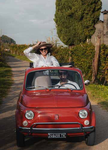Vintage Fiat 500 rental in the Prosecco hills with picnic and wine tasting