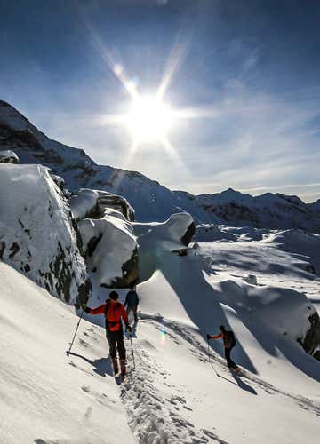 You will learn the technique for the ascent with sealskins and descent by skiing on fresh snow and experiencing the adrenaline of off-piste skiing.