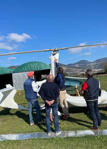 We will arrive in the vicinity of our aircraft, a two-seater autogyro Ela 10 Eclipse. Here the pilot will explain the safety rules to us during a half-hour briefing. At this point, we will be ready to fly for half an hour, one hour or one and a half hours, depending on the option chosen at the time of booking.