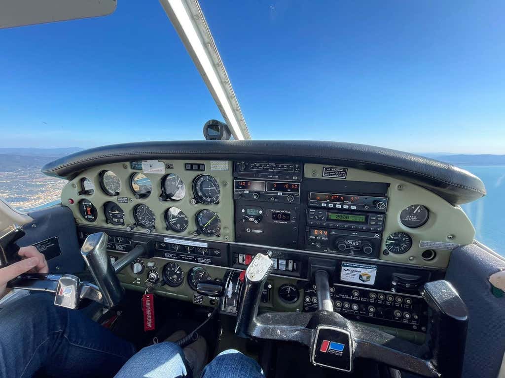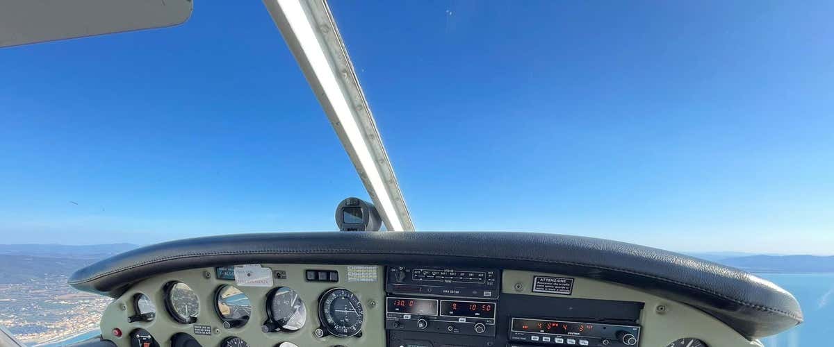 The meeting with the pilot is at thePodere le Cascine airfield (Grosseto). After due introductions and a briefing on the route, you will board thePA-28-180 aircraft, an aircraft built by the US company Piper.