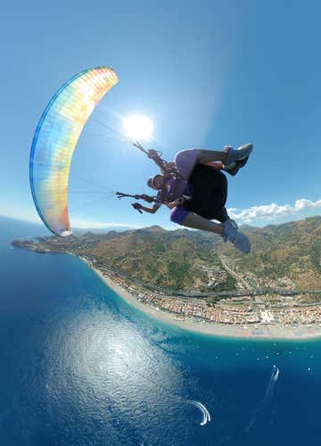 During the 20-30 minute flight, depending on the currents, we will admire the village of Castelmola, the historic centre of Taormina, the ancient Greek theatre and the enchanting Isola Bella, with a spectacular view ofMount Etna and the Ionian Sea. And for those looking for a little extra adrenaline, the pilot can try his hand at some aerobatics!