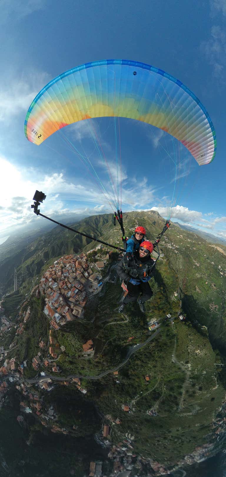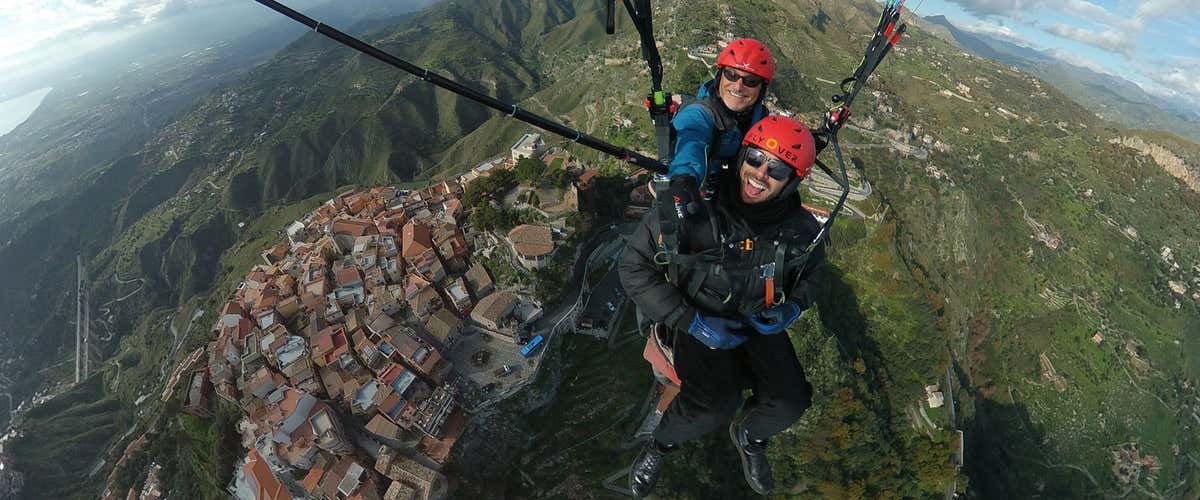 Tandem paragliding flight between Etna, Castelmola and Taormina