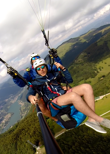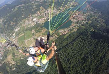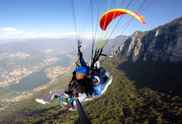 Tandem paragliding flight over Lake Endine