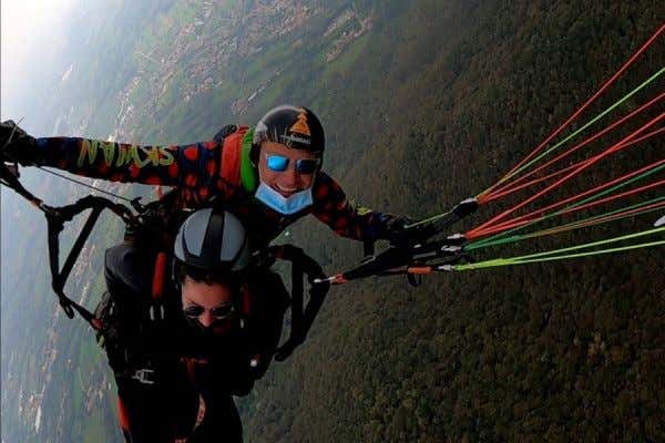 Tandem paragliding acrobatic flight in the province of Treviso