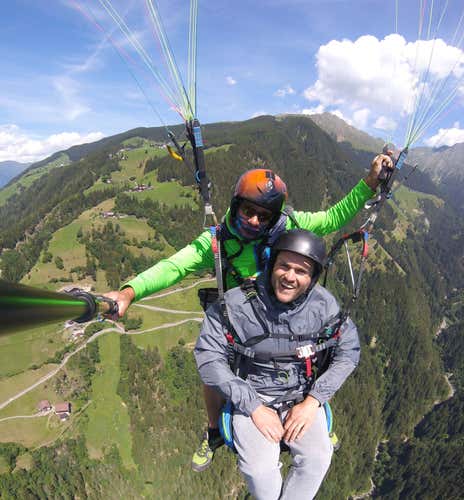 Enjoy a tandem paragliding flight in the beautiful mountains of the Val Passiria, just a few kilometres from Merano in South Tyrol.