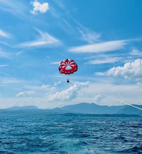 Live an unforgettable parasailing experience by flying over Italy's largest lake alone or in pairs and let the wind blow you away for 11-13 minutes on a high-altitude adventure.