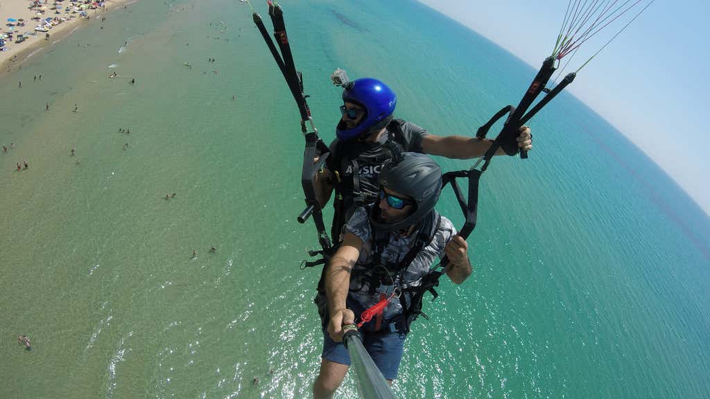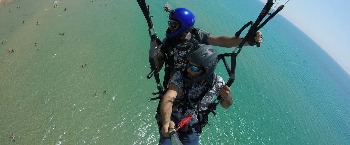 In tandem with an experienced pilot you will fly 15 to 20 minutes supported by the ascending currents and caressed by the Mediterranean sea breeze.