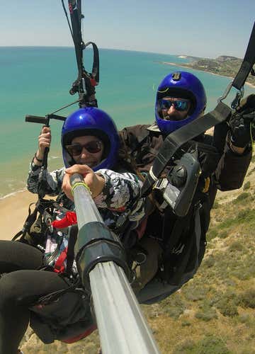 Tandem paragliding flight over the Sicilian Coast
