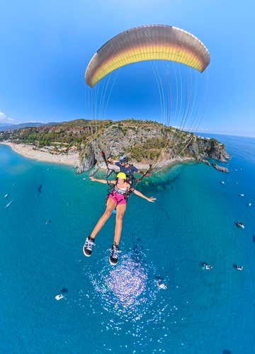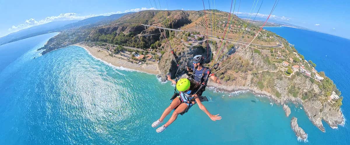 With this paragliding flight over the Costa degli Aranci you soar above cliffs, caves and turquoise water, in tandem with an experienced pilot. You take off from the hill and land on the beach, after a 10-15 minute scenic flight that will change the way you look at Calabria!