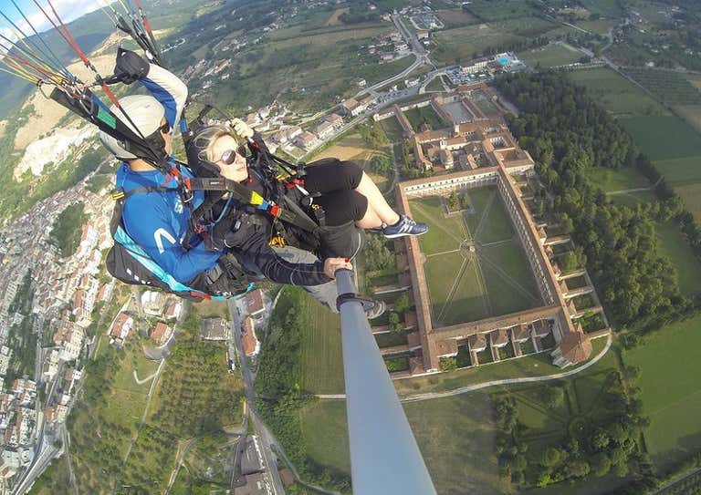 Tandem paragliding flight over the Certosa di Padula (SA)