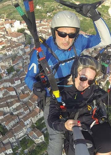 Firmly harnessed and attached to the instructor, all we have to do is take a little run downhill and, in no time at all, we will take off. It will be an incredible feeling, we will feel lighter and freer than ever and we will only have eyes for the fantastic view.