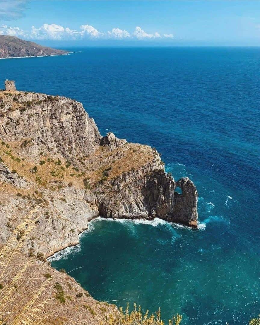 Dive into the waters of Cala Fetente and the beautiful Baia del Buon Dormire. Discover the interior of the Grotta Azzurra, with its sulphurous water springs, stalactites and stalagmites, and admire the iconic Palinuro Natural Arch while taking a souvenir photo of the experience.