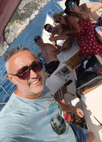 The boat used is Gaia, a 6. 5 m Tuscan gozzo equipped with awning, fresh water shower, refrigerator, berth used as luggage storage, sundeck and stereo.