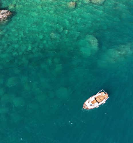 Theboat is a historic 7.50-metre-long Bani gozzo, restored in 2024 and equipped with a large sundeck, awning, freshwater shower and a stern deck. You stay barefoot on board. Dogs are allowed on board.