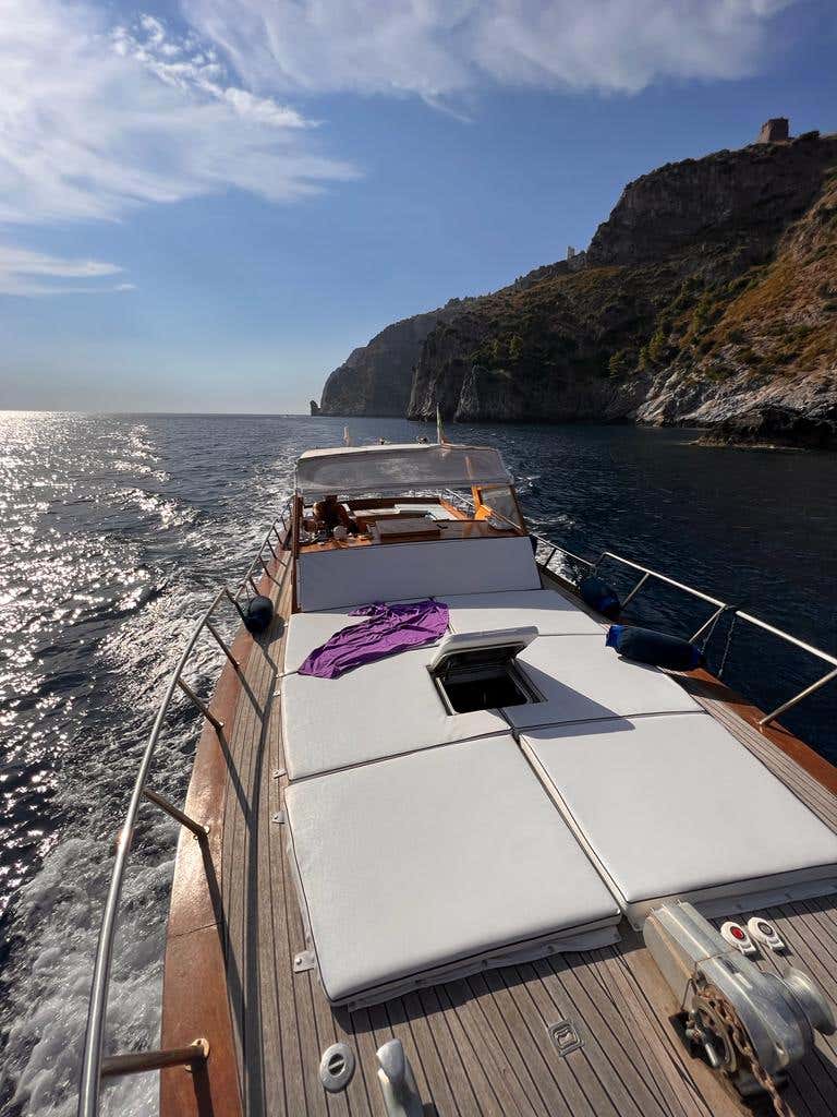 We will then make a swim stop at Ficocella beach or Cala del Guarracino (depending on sea conditions), accompanied by background music and an aperitif on board.