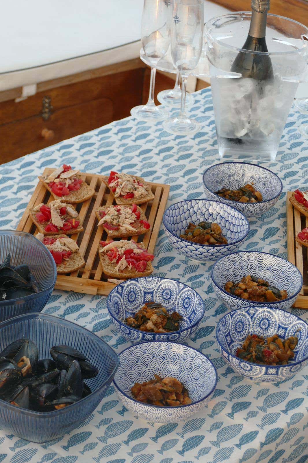 Theaperitif served on board is prepared by a restaurant and products may vary depending on availability. In case of food allergies and intolerances, please contact the organisers at the contact details given in your booking confirmation email.