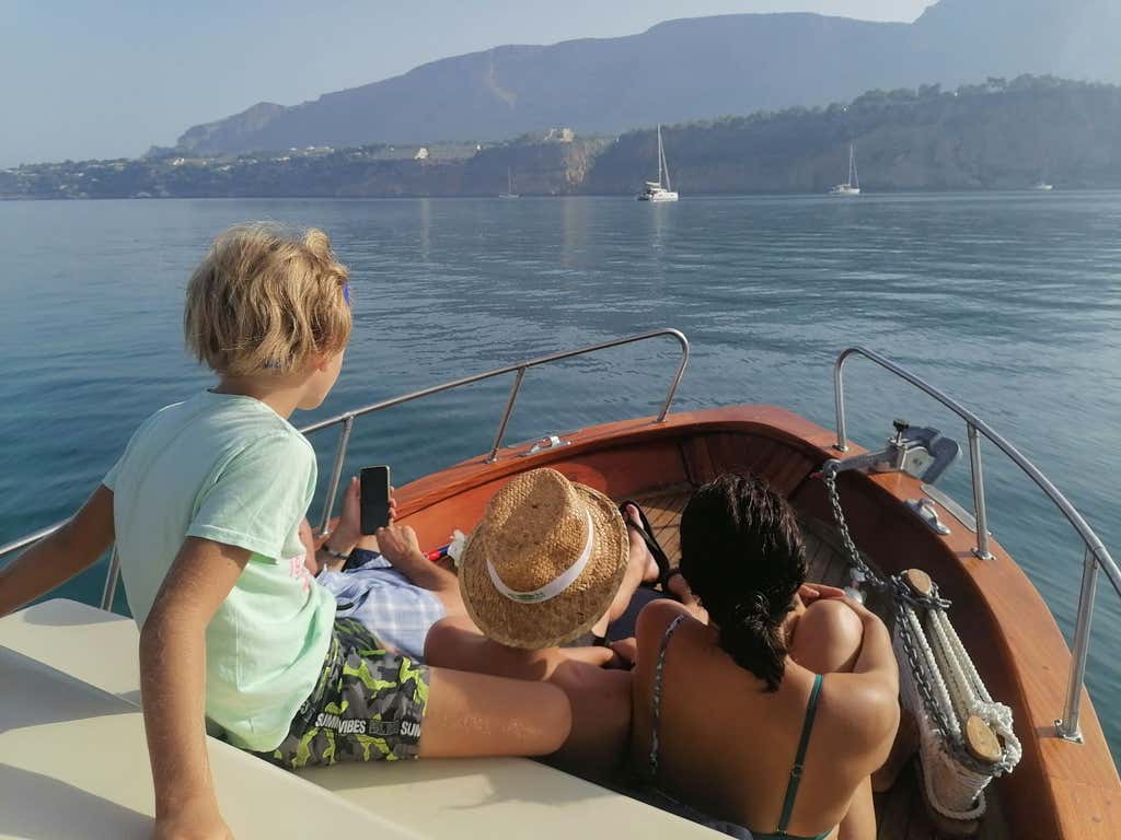 The boat is a 7.5-metre-long wooden gozzo equipped with an awning, outdoor shower and toilet.