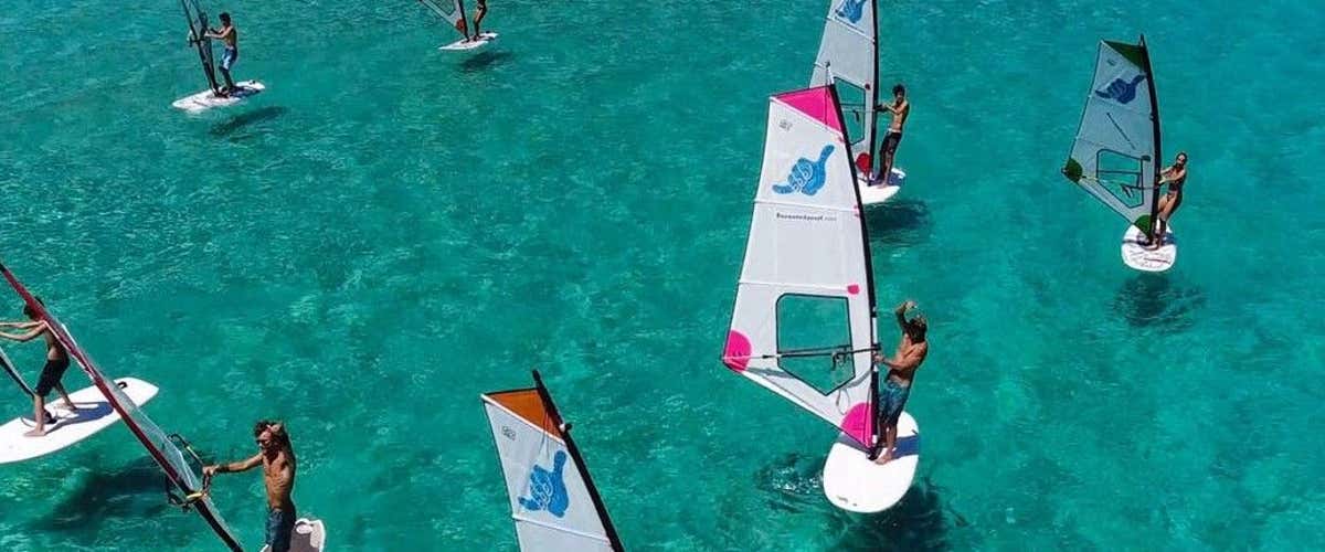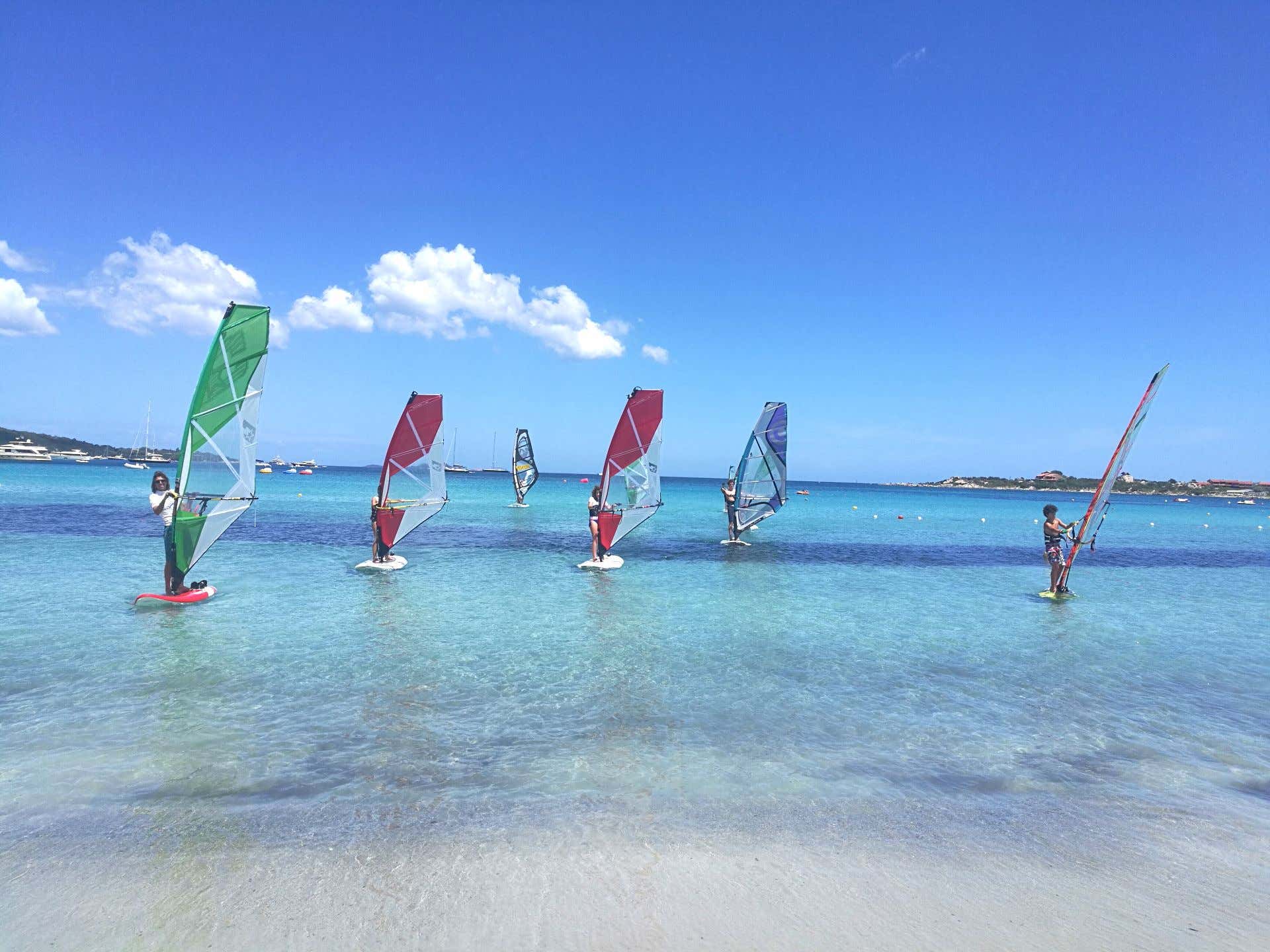 Group windsurfing course in the Gulf of Marinella, Olbia