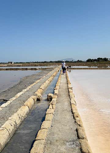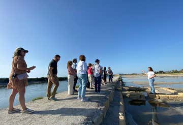 Our walking tour will cover about 1. 5 km of the vast area of the open-air salt pans. We will literally walk inside the ponds, closely observing the processes that transform seawater into organic salt. The guide will show us every step of the process, from the crystallisation of the so-called 'white gold' to its harvesting, enriching the tour with anecdotes about the history and architecture of the salt pans.