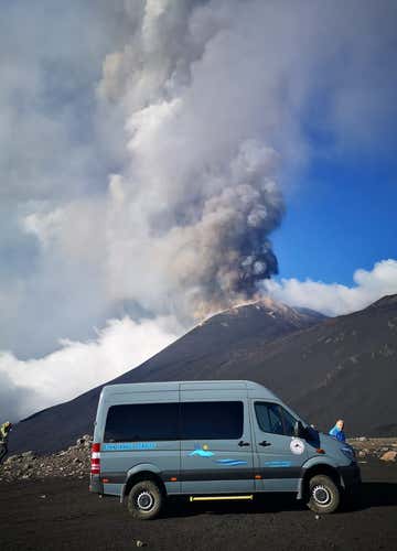 Through a dirt road, one of the highest driveways in Europe, we will reach an altitude of 2,800 metres and leave our vehicles to begin a trek lasting about an hour and a half. We will visit the summit craters (Cratere Centrale - Bocca Nuova) at an altitude of about 3,300 metres, admiring spectacular volcanic phenomena.