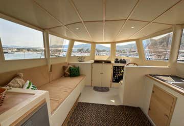 The motor boat planned for the excursion is 10 metres long and 4 metres wide. On board there is a bathroom, shower, refrigerator, stereo for music, seats with comfortable cushions and a sun shade.