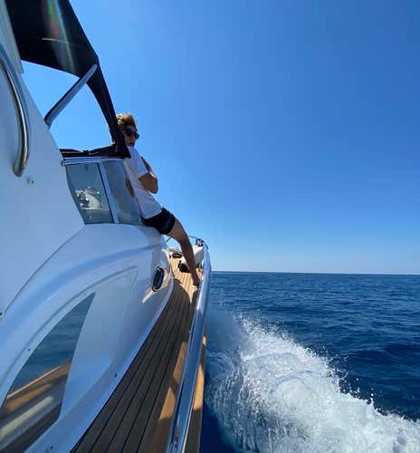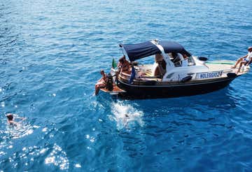 The boat is a typical 8.5-metre long Ligurian gozzo, equipped with shower, WC, cabin, sundeck and shaded area at the stern.