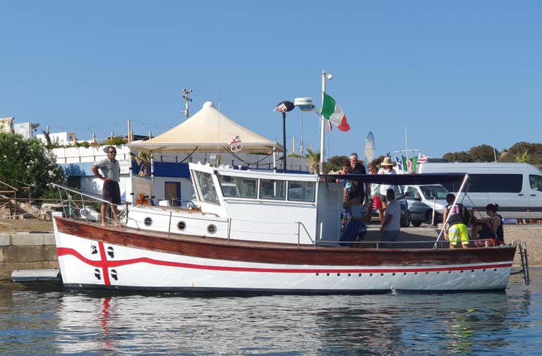 The Penelope is a distinctive wooden-hulled boat 10 metres long and licensed for 12 passengers. A refrigerator and a sun canopy are available on board. The latter creates pleasant shaded areas to shelter from the sun while sailing.