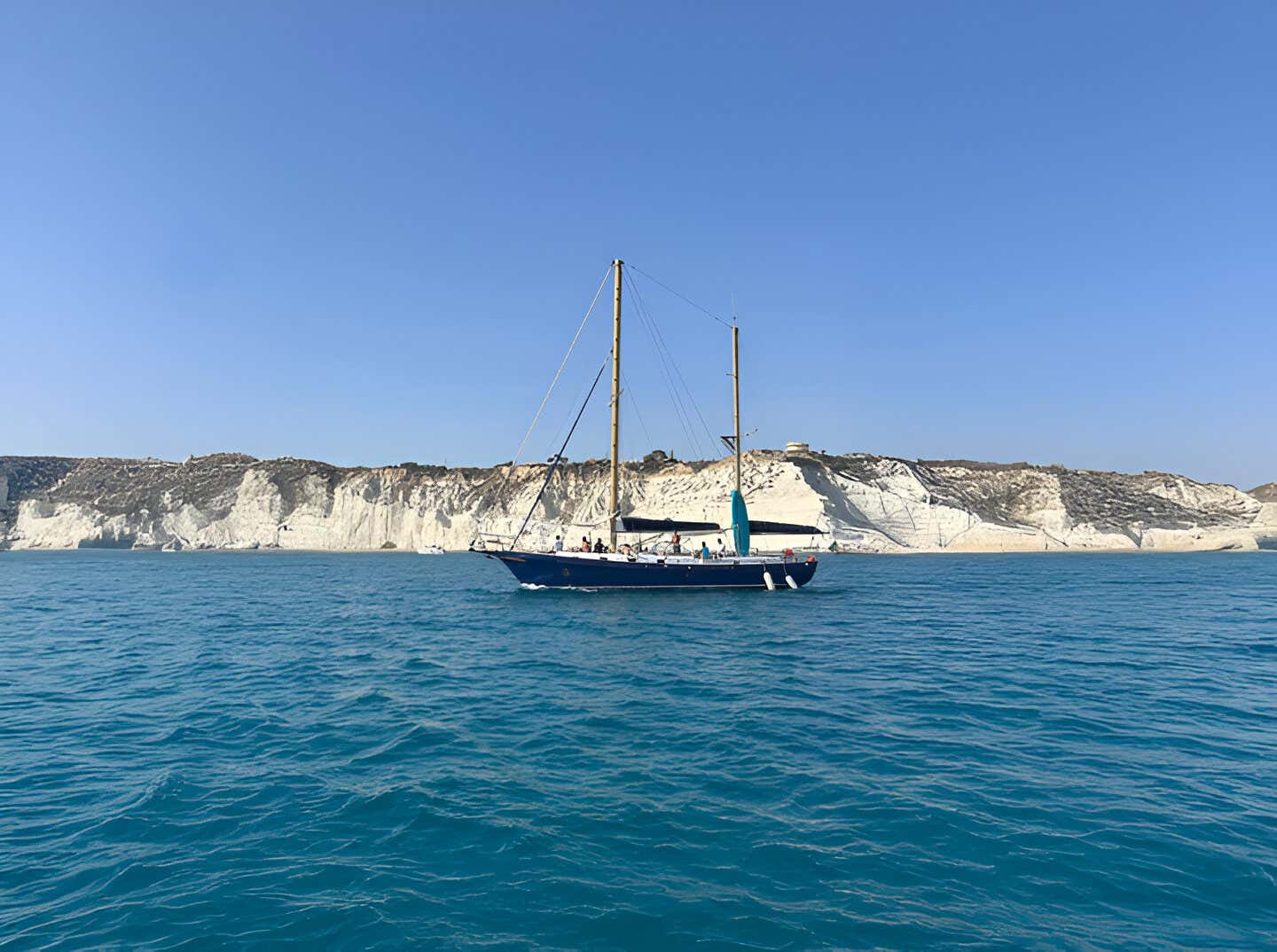 After an initial welcome, we will be taken on board the boat, a 16-metre sailboat equipped with every comfort! We will then begin theadventure by sailing towards the Scala dei Turchi, a magnificent white marl cliff that juts out from the coast and falls sheer into the sea. On the way, we can admire the Valley of the Temples and stop for 30 minutes near Porto Empedocle for some snorkelling.