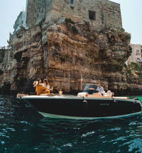 The rendezvous is at the tourist harbour of Polignano a Mare, where I will be waiting for you on board a luxurious motor boat, entirely reserved for you and your group of friends. We will be able to decide the itinerary together, so that we can make the most of the time available, including fantastic views and relaxing swims.