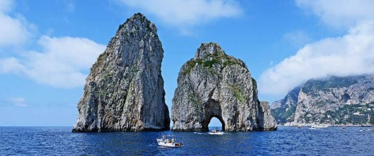 You'll cross the Bay of Naples with a spectacular view of Vesuvius, until you lose your gaze in the blue sea, finally spotting the Faraglioni of Capri.