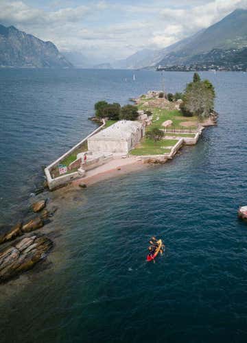 From the Lombard shore to the Venetian shore, you will paddle across the lake towardsTrimelone Island, a small jewel shrouded in nature and history.