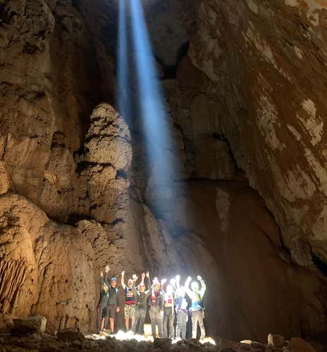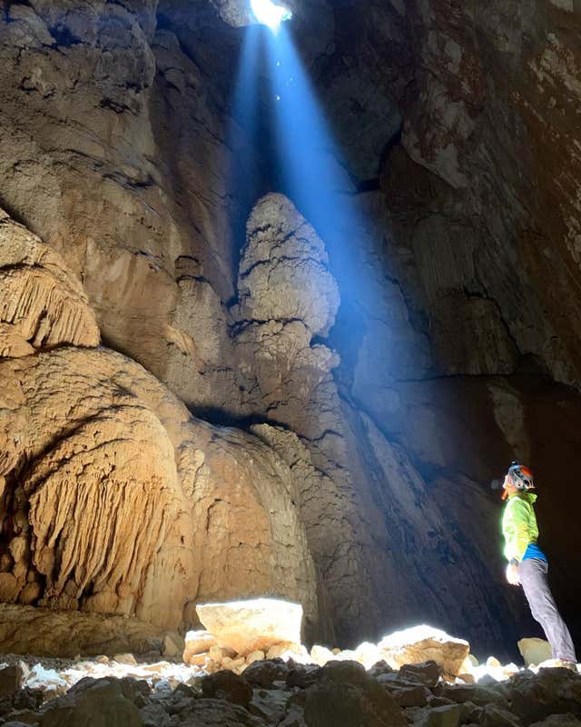 - Admire the beam of light penetrating the majestic cave hall
