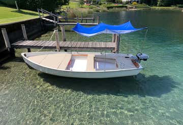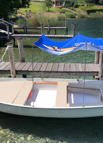 The boat is 4.85 metreslong and equipped with a 3 HP electric motor: perfect for smooth and silent sailing. No boat licence is needed. It can accommodate up to 4 people and is equipped with a sun canopy and cushions for maximum comfort.