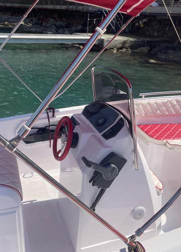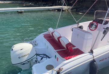 The boat is a 5.90 m longNext 195 motorboat with a 40 HP engine, equipped with a freshwater shower, USB socket, Bluetooth stereo and awning.