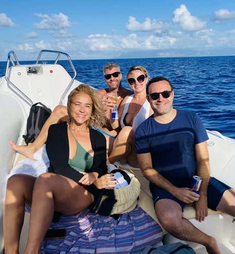 The boat is the Trimarchi Small 580 inflatable boat with a 40 HP engine and a maximum capacity of 8 persons, equipped with awning, sundeck, climbing ladder, USB socket, stereo system and snorkelling kit. It is necessary to remain barefoot on board.