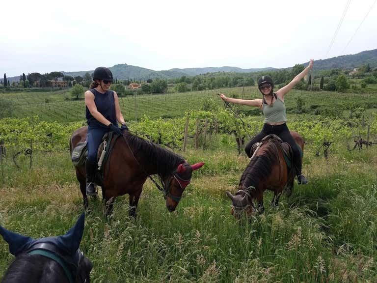 We will then be ready for our horseback ride: we will venture into the hills around the riding school, passing in front of the landowner's scenic villa. We will ride through vineyards that preserve traces of the balze del Vadarno, or natural compounds created by the draining of a large lake that washed the area; legend has it that they were painted on the background of the Mona Lisa by Leonardo Da Vinci!