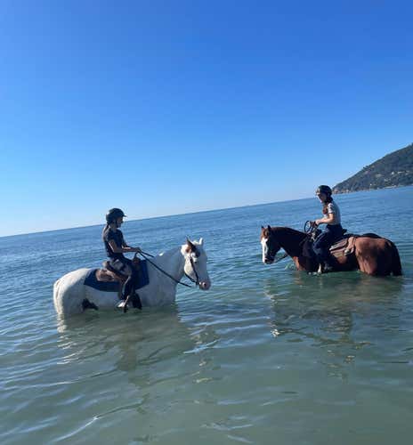 Finally, we will find ourselves on the shoreline: we will ride along the seafront and push our horses into the water. In the warmer months, if we wish, we can go swimming with them! After this fun time, we will make a stop of about 15 minutes at a local café, where we can have a coffee (not included) or rest for a few minutes before getting back in the saddle.