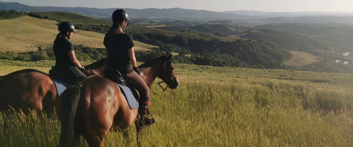 Take part in our horseback ride in Montalcino: in the company of an equestrian guide, you will ride in the scenic natural setting of the Tuscan hills, in the heart of the Crete Senesi and Val d'Orcia.