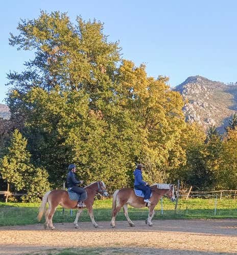 Our first experience (or retraining, for those who have not ridden a horse for some time) consists of a theoretical lesson, in which we will be explained the basic commands of the horse as well as all safety notions, and a practical lesson on horseback, to try and learn how to manoeuvre the horse safely.