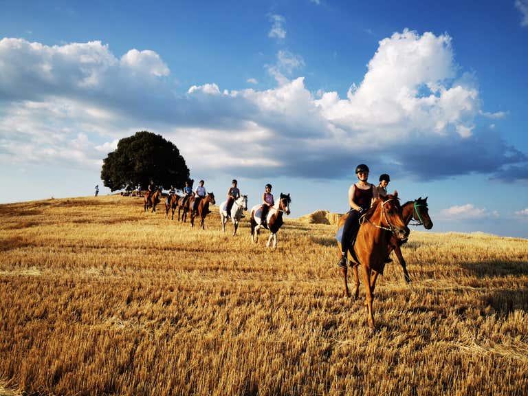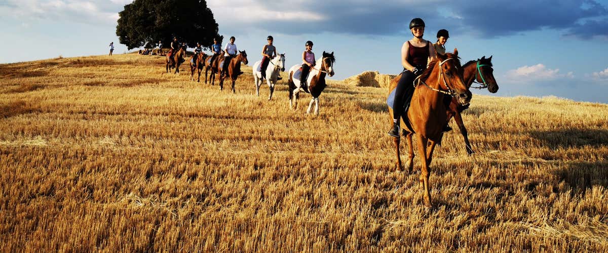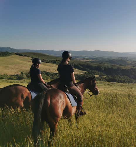 Take part in our horseback ride in Montalcino: in the company of an equestrian guide, you will ride in the scenic natural setting of the Tuscan hills, in the heart of the Crete Senesi and Val d'Orcia.