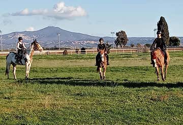 Once in tune with our horse, we will set off on a one-hour ride in the green area surrounding the city of Rome: theAgro Romano. During the approximately 3 km route, we will ride past stables, horse racing tracks and theCiampino Area, where racehorses are bred. We will then continue on, immersing ourselves in the surrounding nature, admiring the scenery of the Latium hills and crossing a charming tree-lined avenue framed by pine trees.