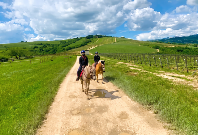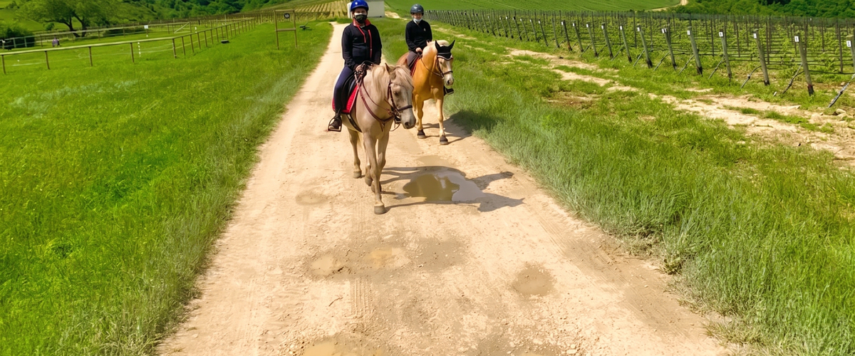Then our horseback ride will begin: we will venture into the hills surrounding the riding school, dotted with vineyards. The scenic route, mainly on dirt roads, will give us a view of the Po Valley, the Lessinia mountains, and the city of Verona. Riding in this natural setting, just a few kilometres from the city, will steal your heart!